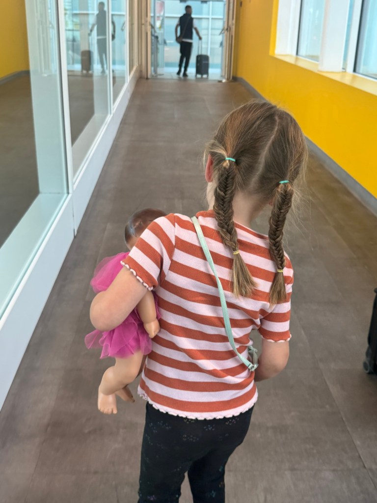 Getting through passport control was easy enough. The airport is big and modern. Millie was in good spirits and well behaved. I’m unsure if we should credit a good night’s sleep, lots of playtime this morning, the new reward system, or just chance. It reminds me of when she was a baby and we were trying to get her to sleep — I would do anything to recreate positive results.