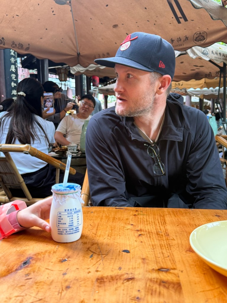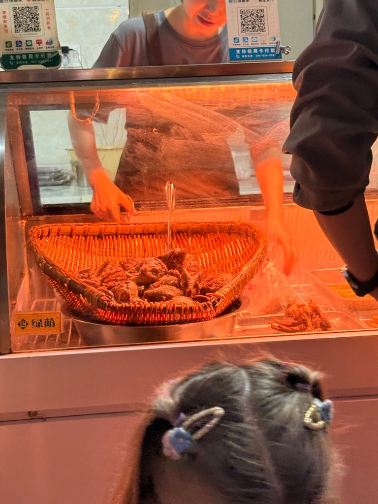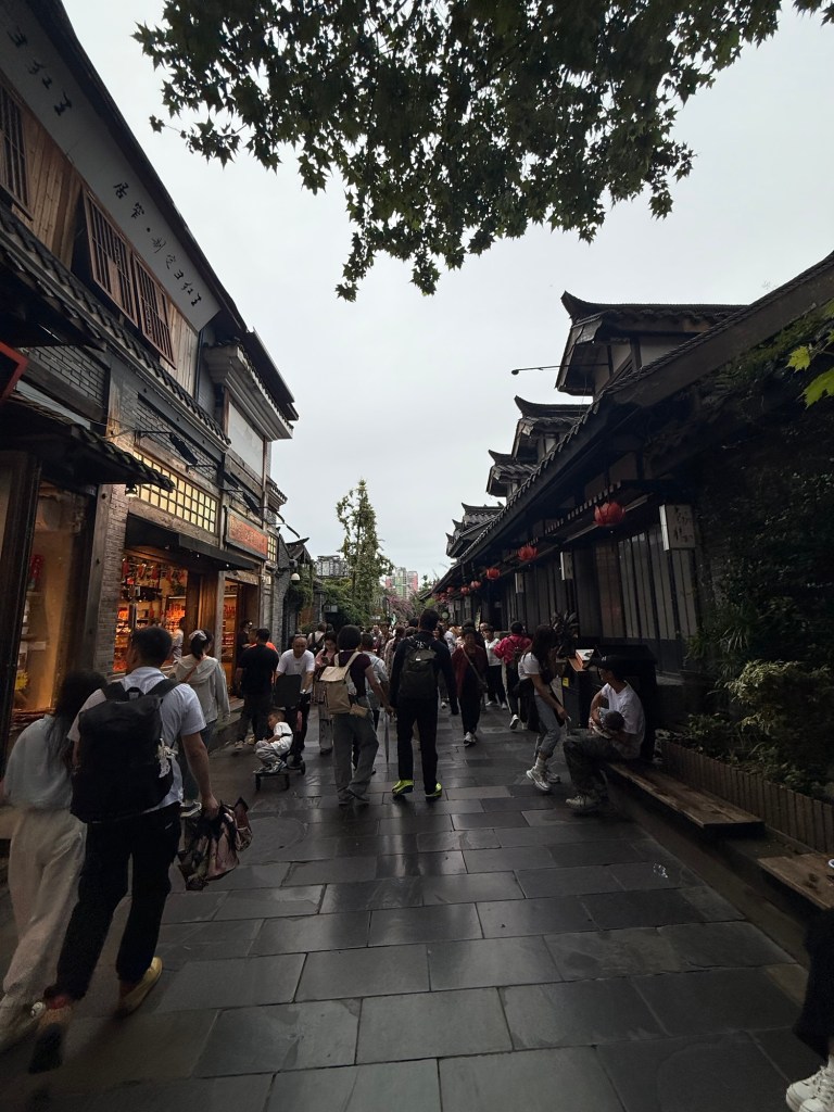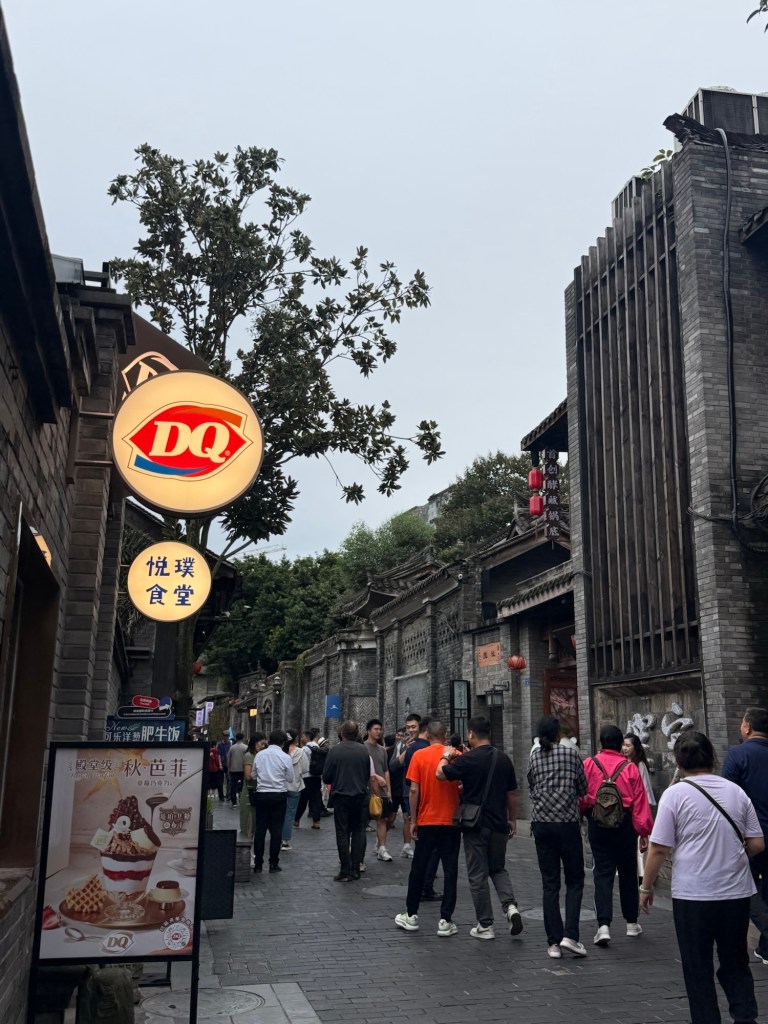From the park we walked to Kuanzhai Alley, also known as “wide and narrow alley”. This was touristy but fun, with a mix of history and new restaurants and coffee shops and then some American chains. I was surprised to see a DQ (Dairy Queen) among the QD (Qin Dynasty) era buildings.