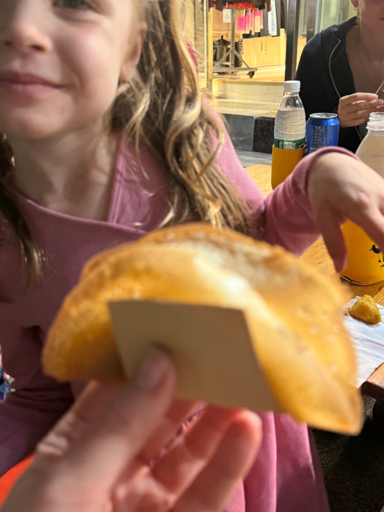 It was a rainy morning so we stuck around the hotel. We read comics, had a big breakfast, and I played with Millie in the playroom. Usually she’s the only kid in these things but today it was busy. No English speakers, unfortunately.