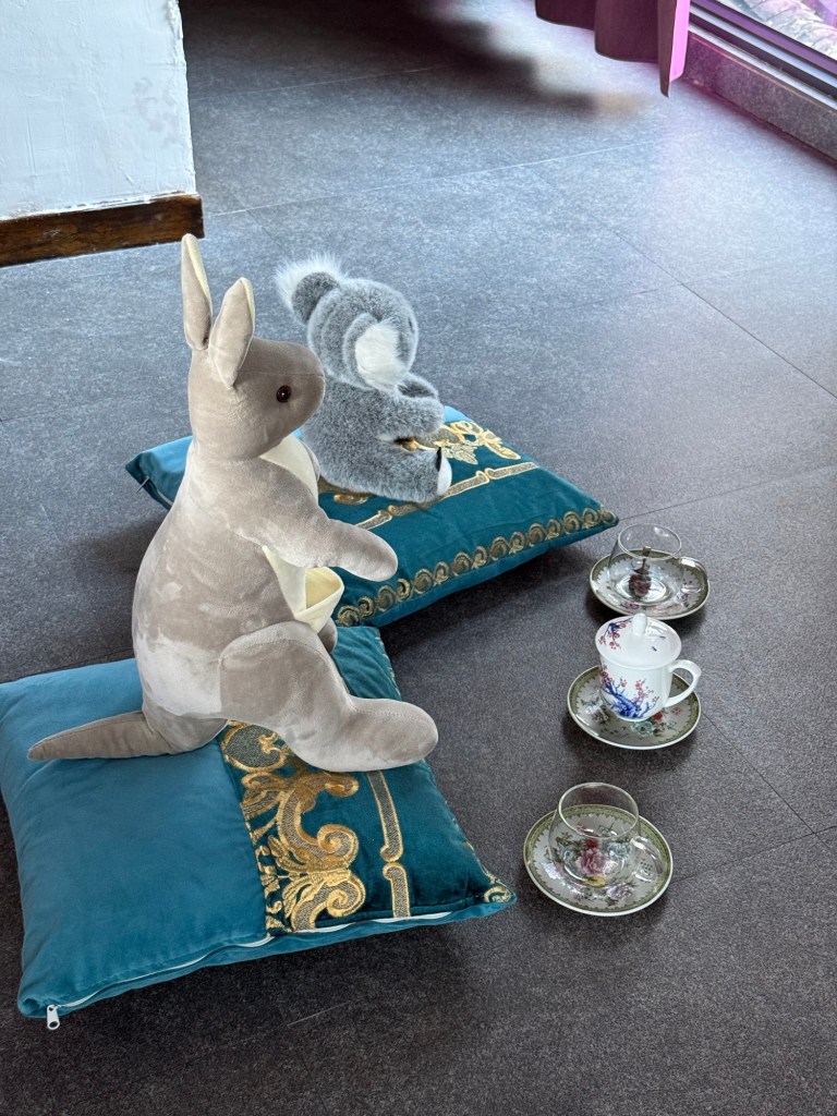 The room included stuffed animals and Millie wasted no time playing with them and setting them up in an elaborate tea party.