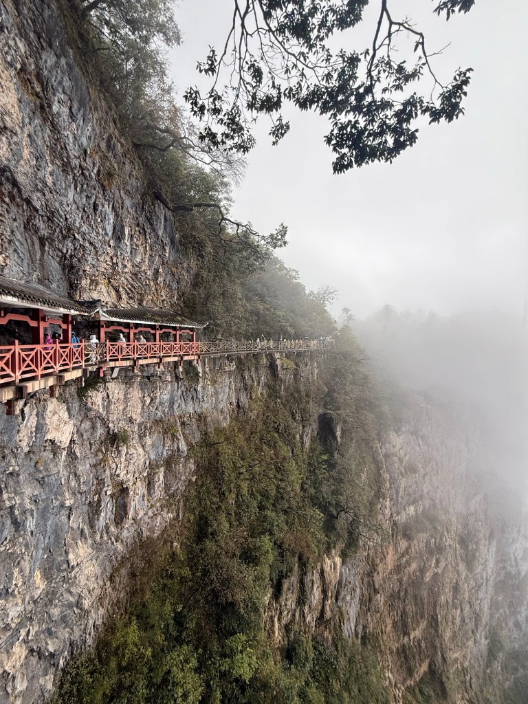 At about 11 we bit the bullet and called a taxi to take us the 45 minutes to Tianmen Mountain. The vibes were very similar to yesterday: shuttle bus to cable car to walk to escalator to another cable car to walk, etc.