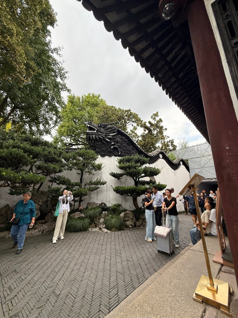 We realized we were next to Yu Garden so went to see that when she was done playing. It was touristy and packed with people, but pretty.