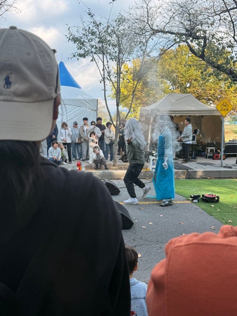 There were multiple street festivals happening with stands selling everything you can imagine. We stopped for a while to watch a very entertaining street performer. Here he was doing a bizarre rendition of “Let it Go” from Frozen.