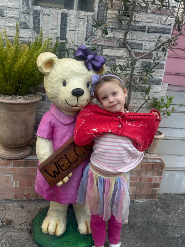Millie found a bear with a matching bow and insisted on taking a photo with it.