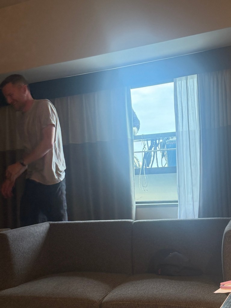 I showered and was getting dressed when suddenly a window washer appeared outside of our room on the 36th floor. Nick suddenly said “what the fuck?!” And I turned around in my underwear to make eye contact with a man outside. We could not stop laughing.