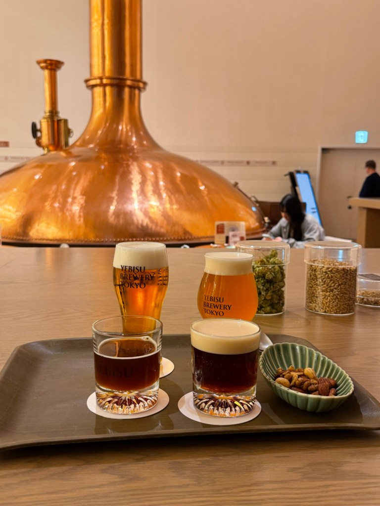 At 4 we finally left the hotel. We took a very convoluted subway journey to the Ebisu neighborhood. Our first stop was the Yebisu brewery, which was large and beautiful.