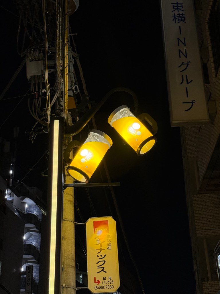 After the above beers we walked to Ebisu Yokocho, which is a small indoor alley of food stalls. We couldn’t decide where to eat, so stopped in at a few and ordered 1-2 small dishes at each. We had anchovy fried potatoes, grilled offal, a couple of different types of gyoza, and shishito peppers.