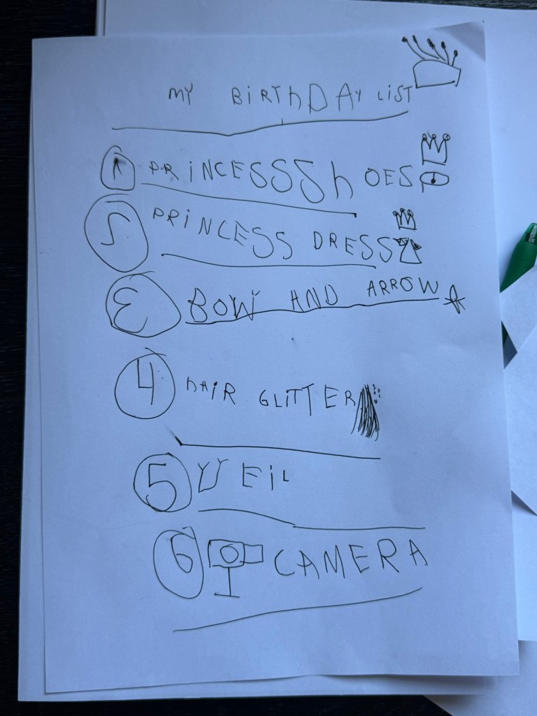 Big day of lots of walking today. After hotel breakfast buffet (C+ at this hotel) we all got ready. Millie worked on reading and writing with my mom. She seems to have more patience when it’s not one of us trying to teach her. Her adorable birthday present wishlist: