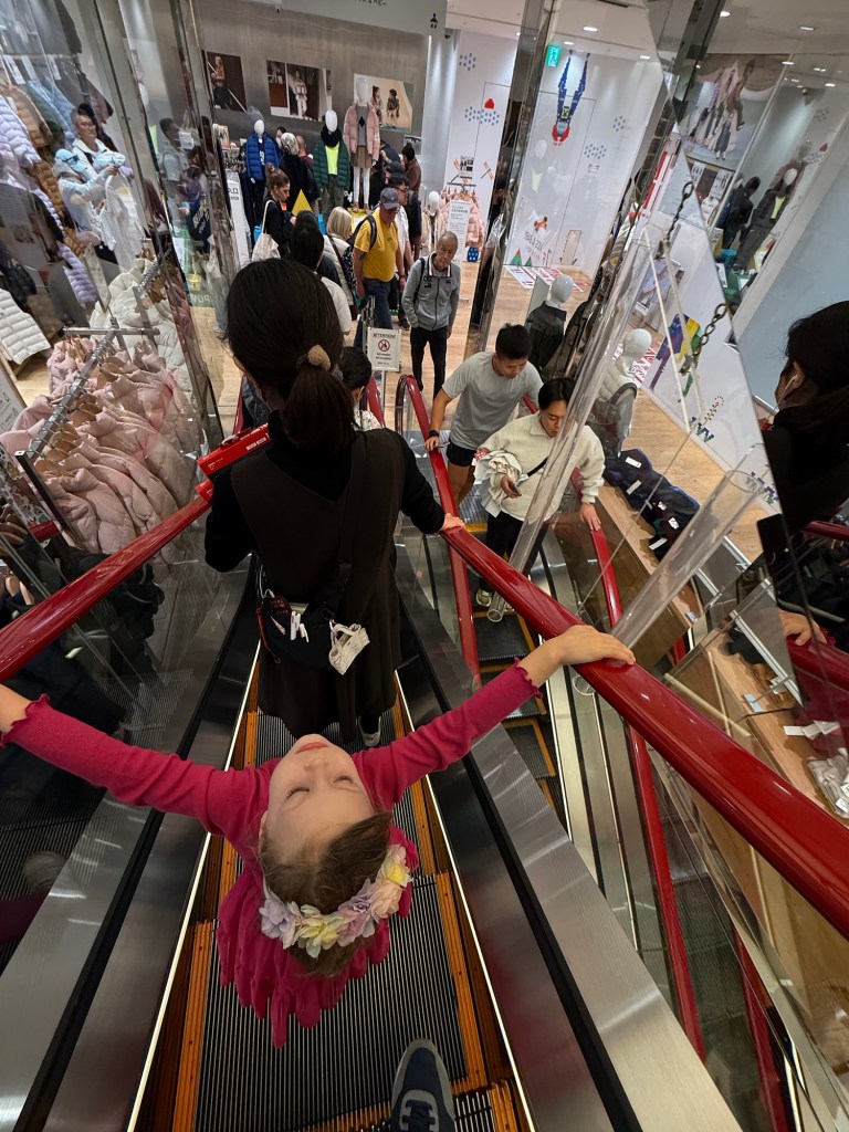 Our shopping excursion was a bust. Muji didn’t have luggage tags and the world’s largest and most packed Uniqlo didn’t have v-neck women’s tshirts or kids’ rain jackets. We rode the elevator up 12 floors, and down 12 floors.