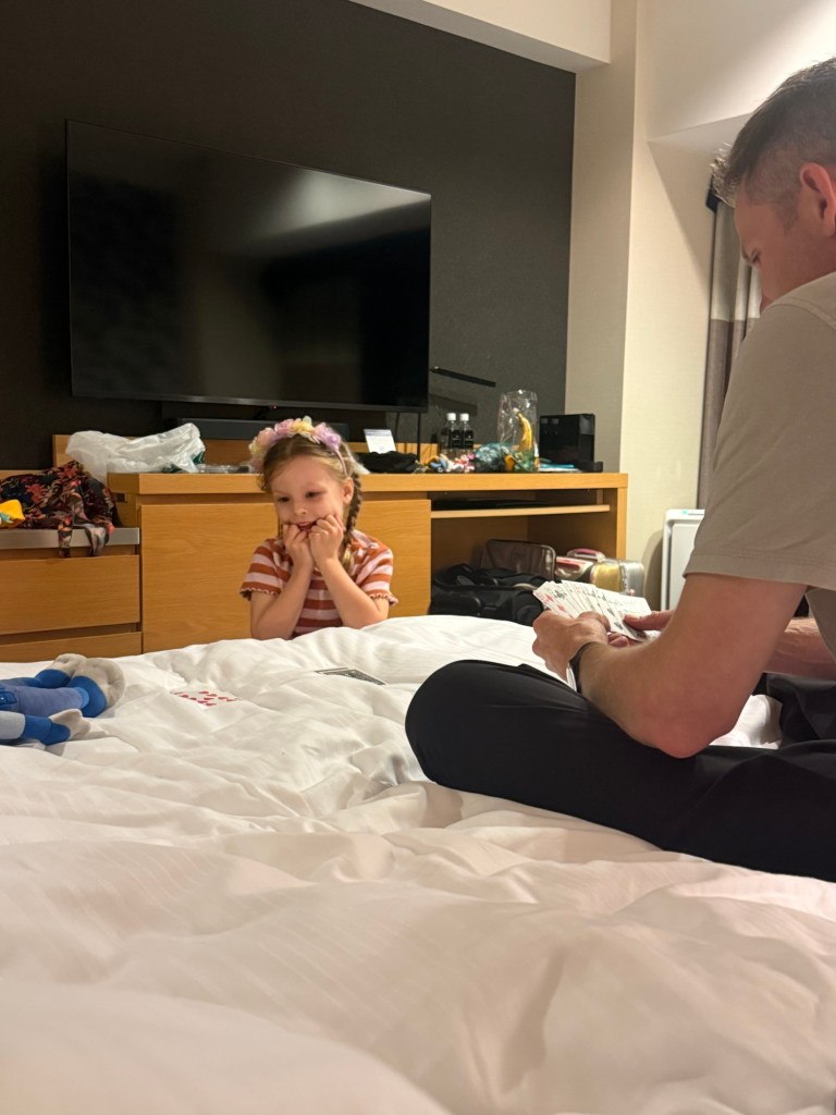We took the train home and watched a movie for Sunday movie night. After the movie Nick taught her to play Crazy 8s and she went on to beat him 4 times in a row.
