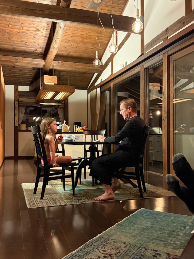 Our Airbnb hosts left us tickets to the local onsen, which is only 15 minutes away. Everyone was excited about it until we all slowly started to realize that you had to be naked to get in the public baths. For some reason Nick didn’t think of “get naked with your father-in-law” as a relaxing Thursday afternoon activity. Millie was fine being naked but “didn’t want to see thousands of other people’s private parts”. In the end, my mom and I were the only ones brave enough for the true Japanese cultural experience. The prudes dropped us off and in we went.
