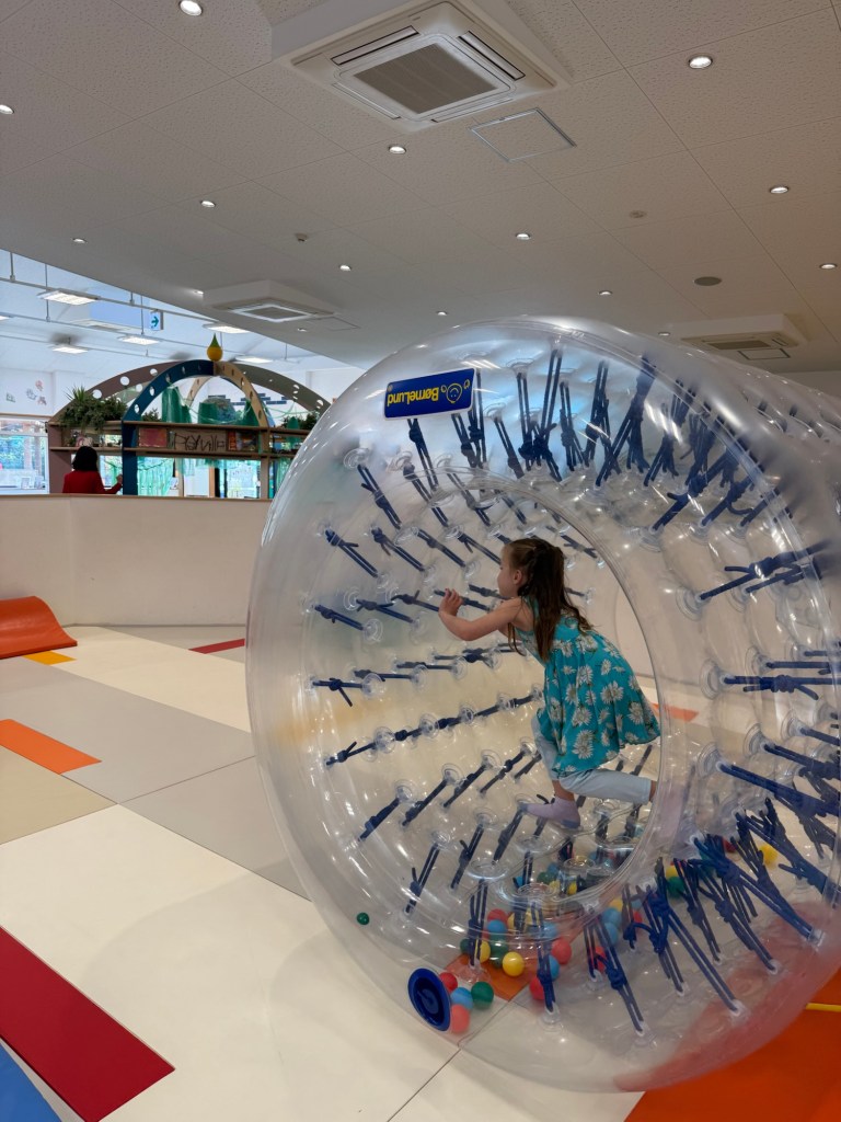 Playville was a large indoor / outdoor kids play area. Of all of the similar types of recreation places we have been to on this trip, this one was probably my favorite. It felt very Montessori. It had a bunch of simple and welcoming stations set up for kids to play on.