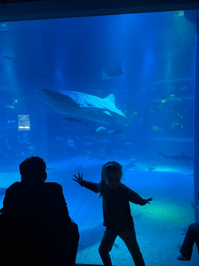 We took the train and arrived at the aquarium. Millie saw the Ferris wheel and insisted we do that first. As soon as we were on she told us it was boring and then admitted she had confused ferris wheels with carousels.