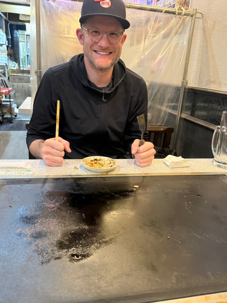 We rode the train back to our Airbnb, caught up with my parents, and then put Millie to bed. Once she was asleep we snuck out to get some dinner. We ordered yakisoba and okonomiyaki with noodles in it. It was so so good and we ate it all. Hard to capture in a photo, but it tasted like breakfast. Sweet and nutty and bacon-y.