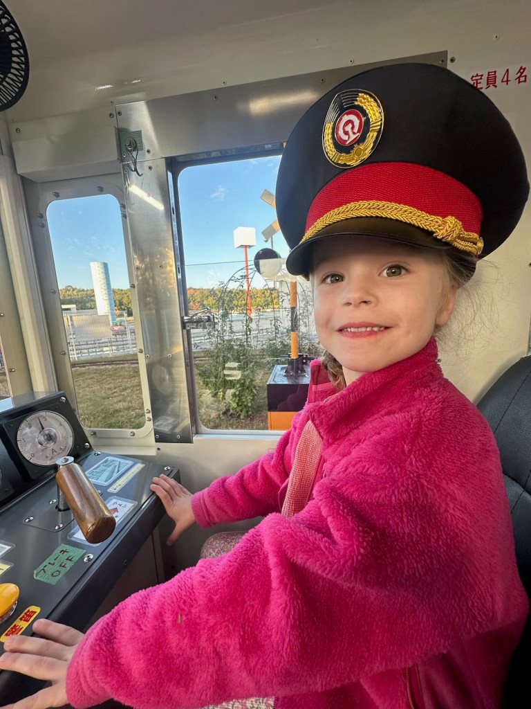 Meanwhile my parents took Millie to the playground, on a swan boat tour, and on a little train where she got to drive and play as the conductor.