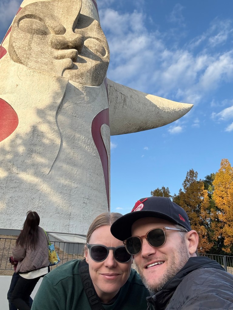 Nick and I tried to break off to attend the ramen festival that was happening in the park. But the tickets were too complicated so instead we just bought a highball from a truck and sat on a curb having a “date” while Millie played. We split off tomorrow so this is likely the last alone time we’ll have for the next ~5 months. We sat in front of the Tower of the Sun monument and admired it while chatting about the trip.