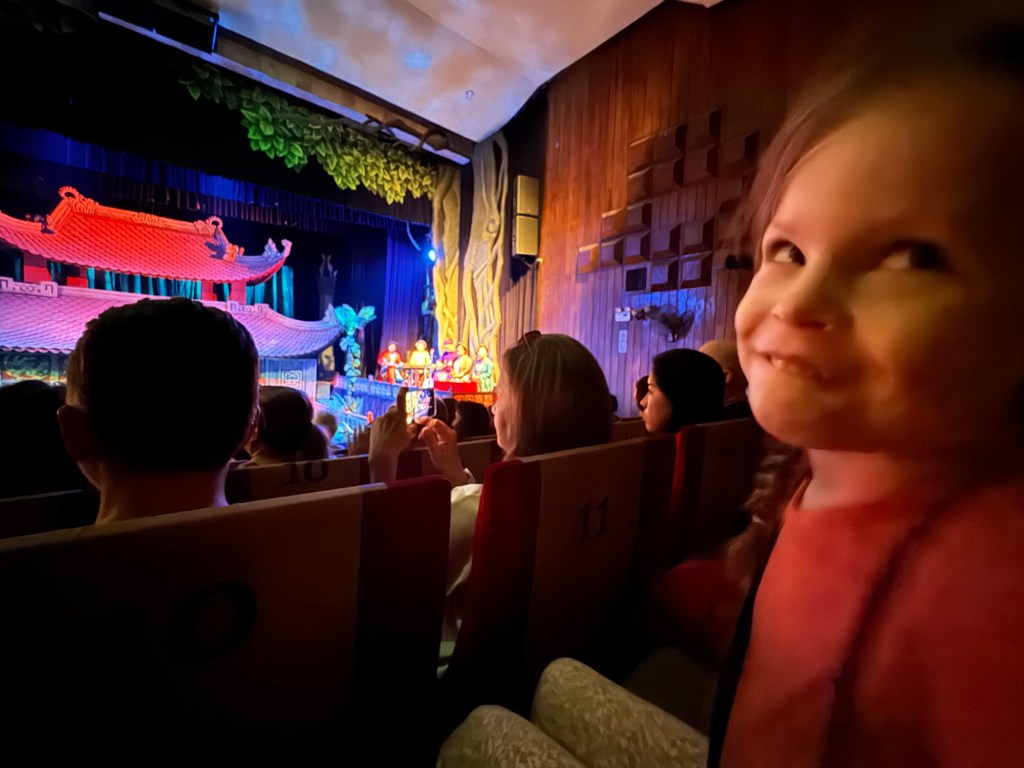Meanwhile, the two amigos had a great day together. They went to a traditional water puppet performance. Millie loved it and sat still and watched for the full hour.