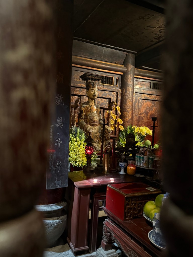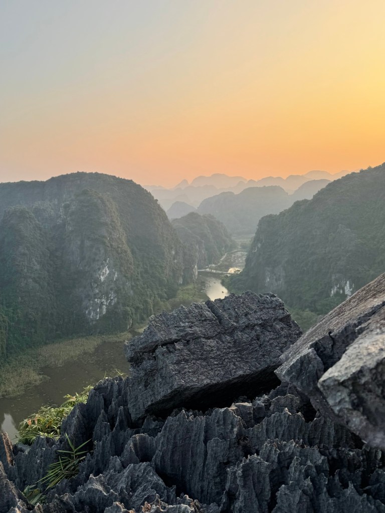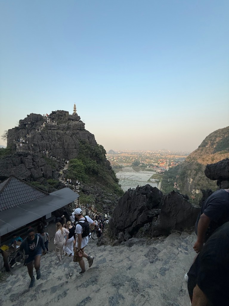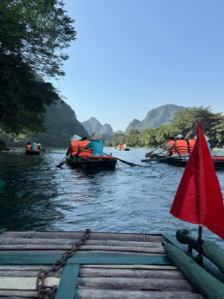 After this we had a mediocre buffet lunch and then got back into the bus for our next stop, boating around Trang An. Each boat was rowed for two hours by small but mighty women. I can’t imagine a rougher job, especially in the heat of the summer. We helped paddle and agree that we’ll be sore from it tomorrow.