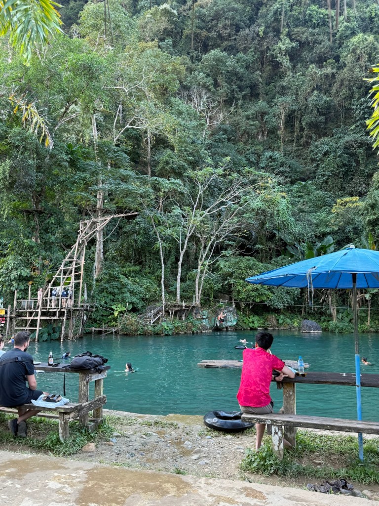 We arrived at Blue Lagoon 3 and paid the small fee to enter. We ordered some lunch from the cafe and watched people do tricks on the rope swing as we ate our spring rolls.