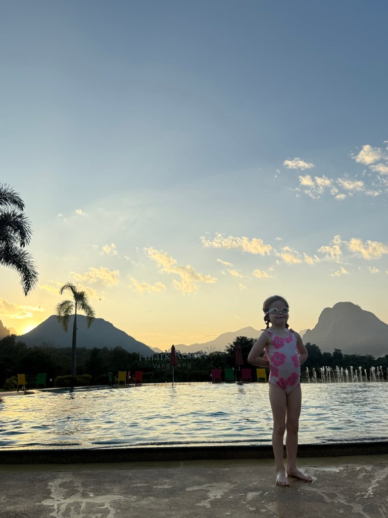 We arrived back at our hotel at only 3, despite having what felt like a full day. Millie swam in the pool while Nick and I watched her and talked about how much we love Laos.