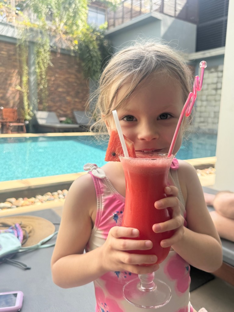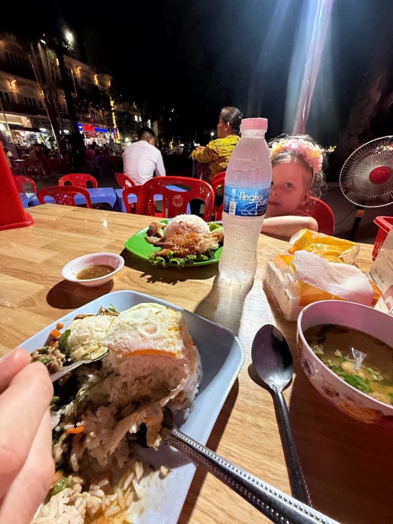 We walked back through Pub street, which Millie requested because it looked “fancy”. It was the opposite of fancy with lots of big bars and clubs and drunk foreigners. There were ladies on the street selling various trinkets and Millie got very upset when we wouldn’t get her a ballon covered in LED lights. I couldn’t get out of there fast enough.