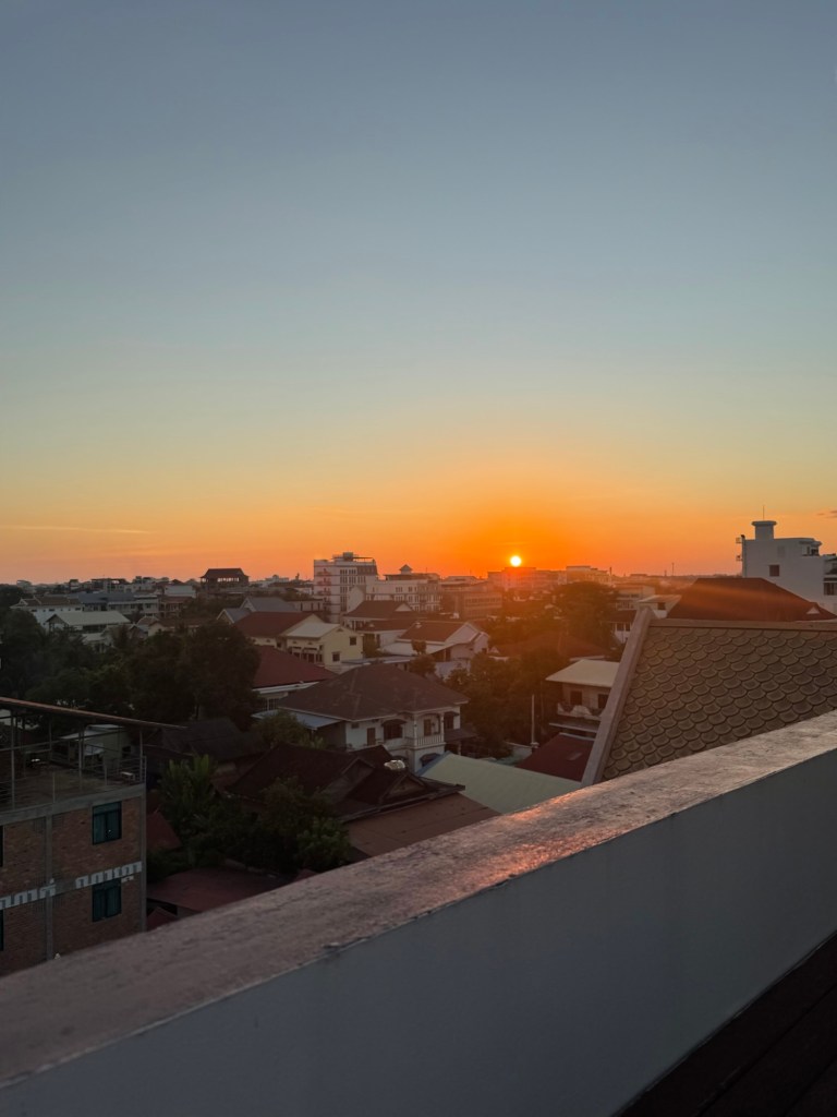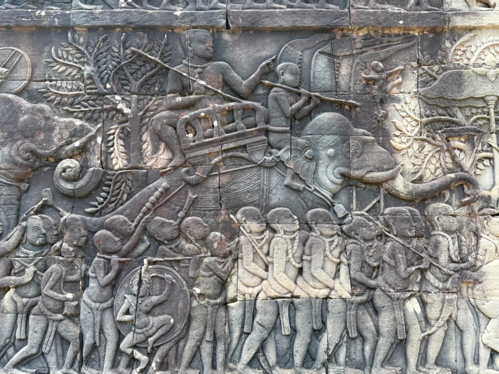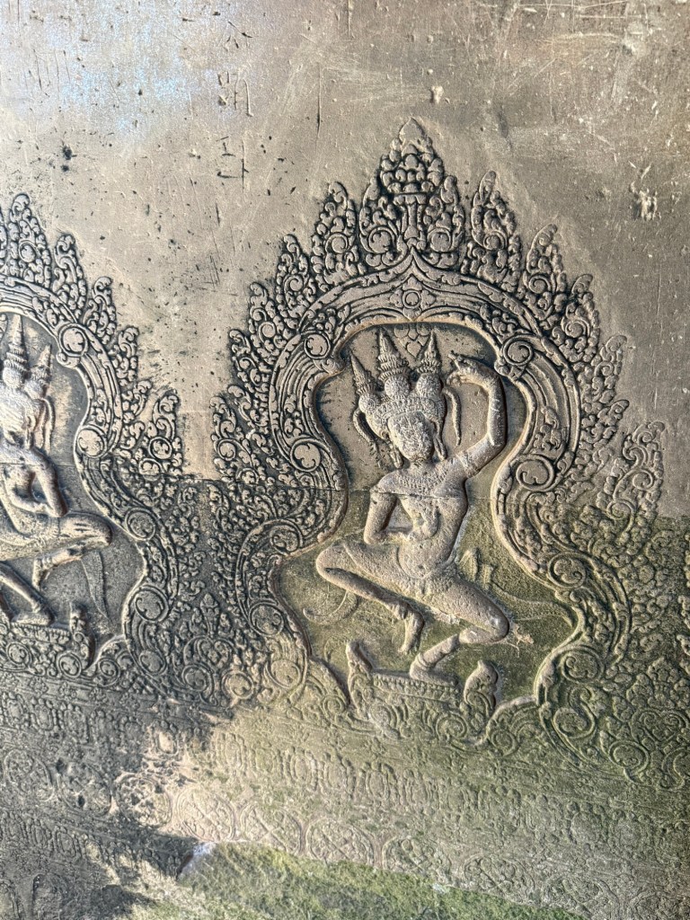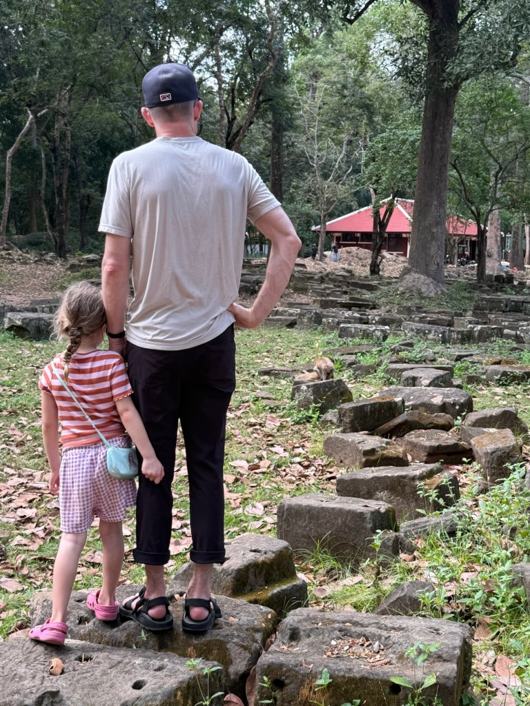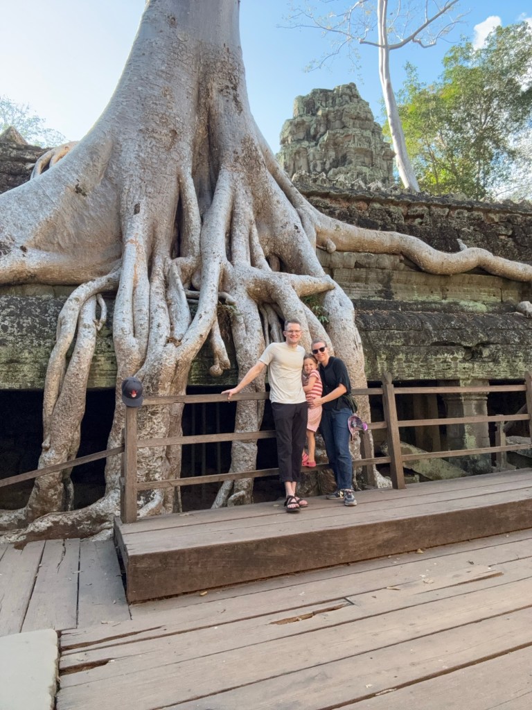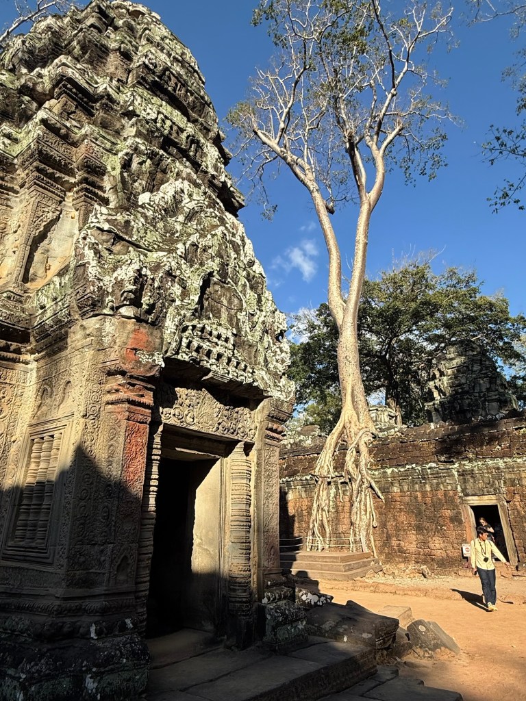 After our breakfast and showers, we chatted with the hotel front desk to organize a tuk tuk for the day to take us to see the temples at and around Angkor Wat. As we were waiting for it to arrive, Nick and the hotel employee got into an interesting conversation about the Thailand-Cambodia conflict. We have now heard the “why” behind it from a young Thai guy and a young Cambodian guy, and they gave us completely different stories. There are three sides to every story…