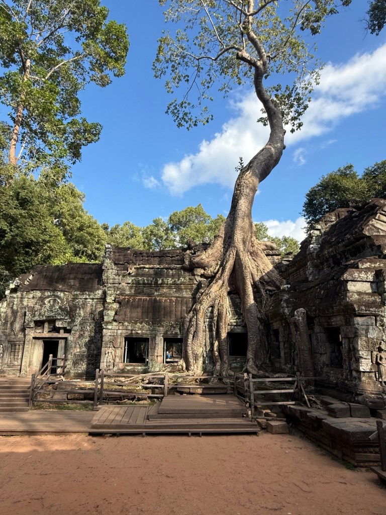 We walked and walked and explored and eventually met back up with our driver. He brought us to a lunch spot that clearly catered to tourists, which in this moment we didn’t mind at all. We ate some much needed lunch and then moved on to our final stop of the day, Ta Prohm Temple.