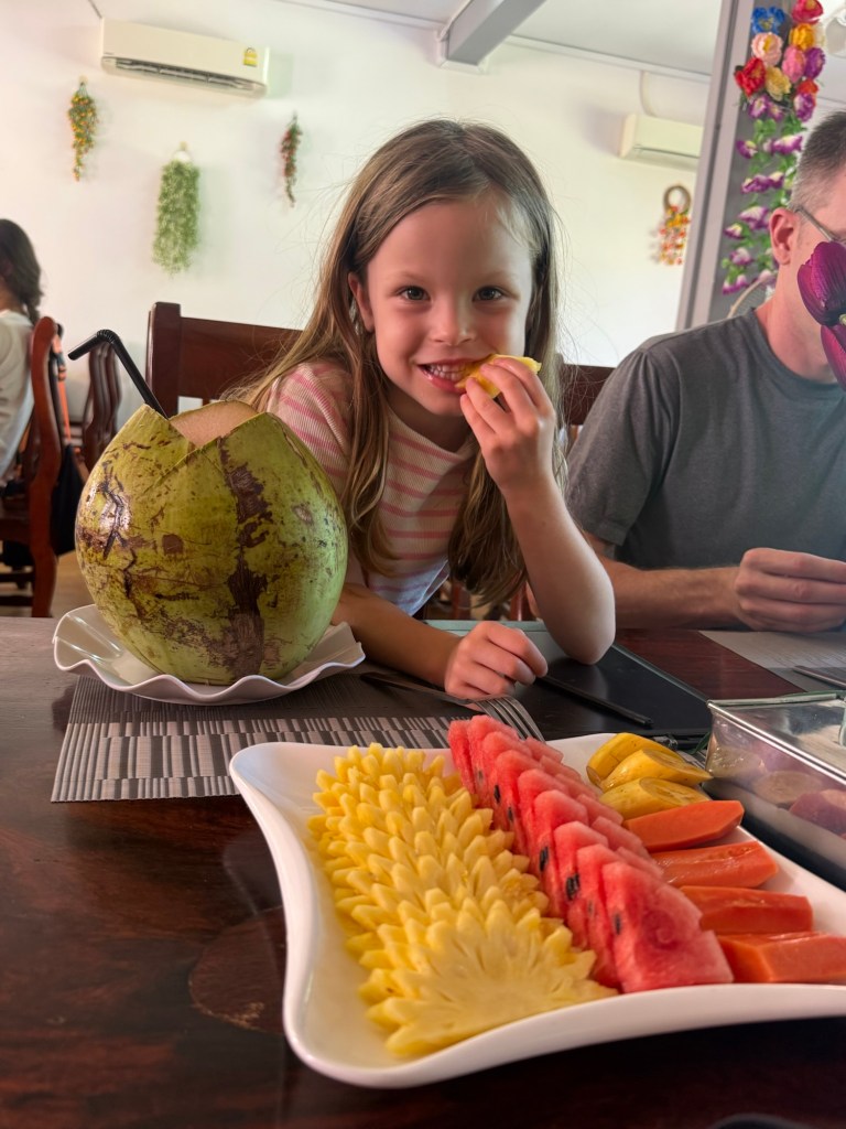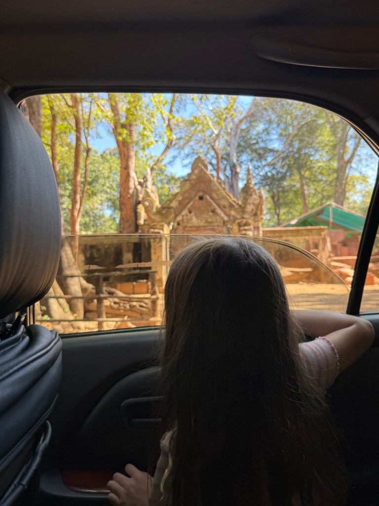 We headed back to the car and drove an hour back towards Siem Reap. We stopped for lunch where Nick and Millie each got coconuts the side of their heads.
