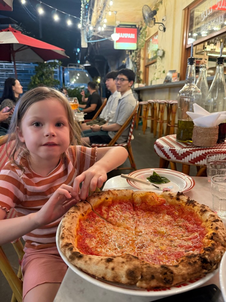 We dragged her out of the room for dinner. We were walking to an authentic restaurant and went past a very aesthetically pleasing Italian cafe. We looked at each other and decided to just stop there. Pizza two days in a row, a real treat for Millie. The pizza was excellent, again.