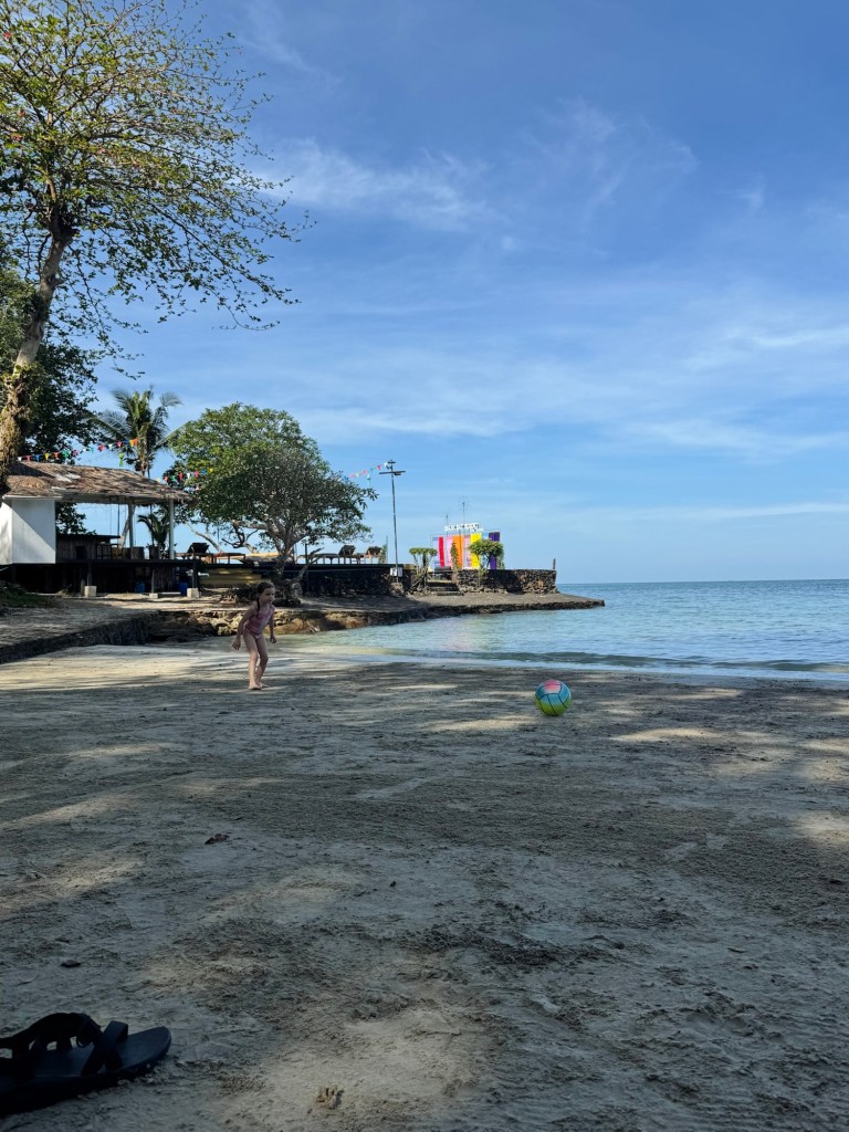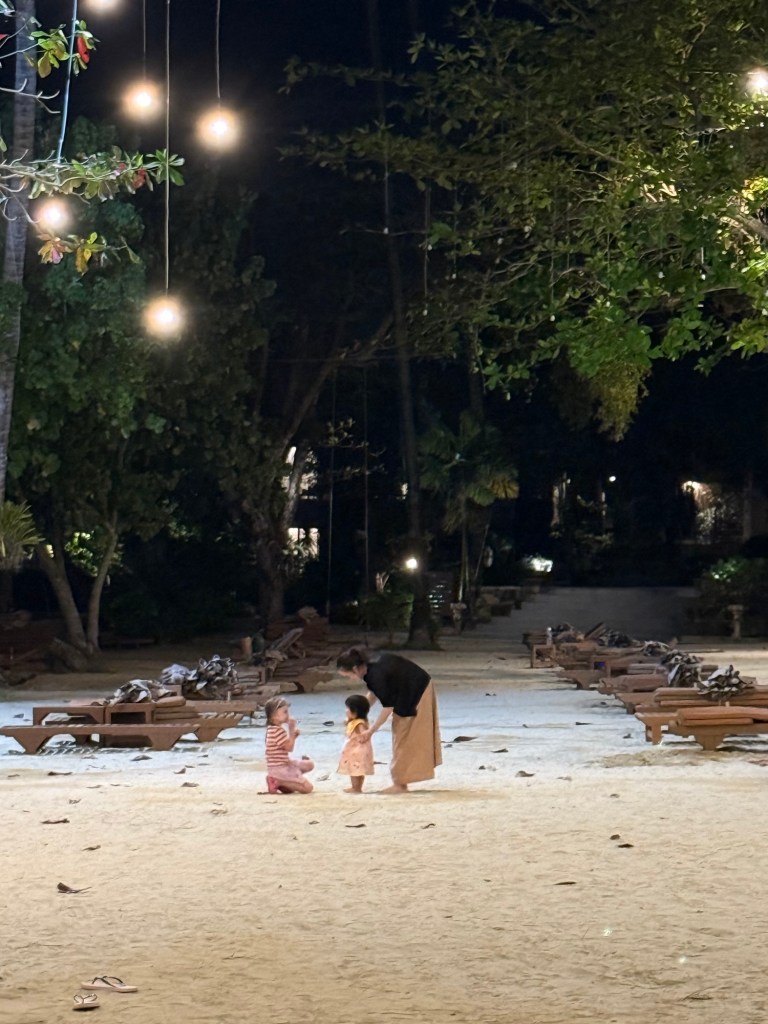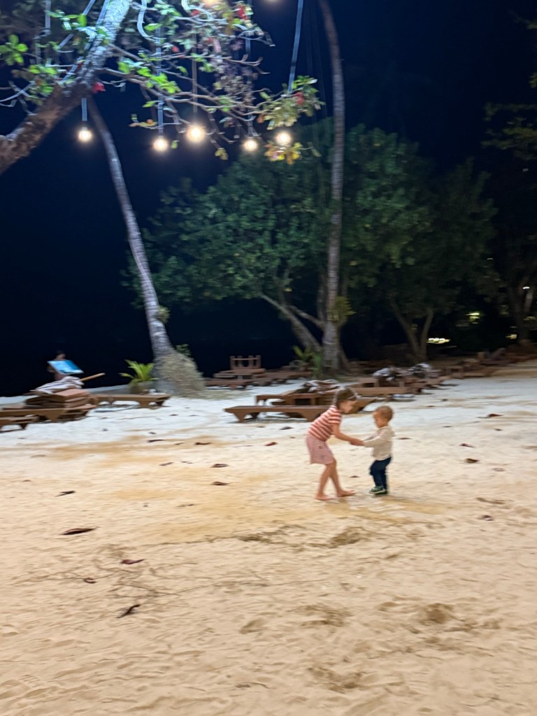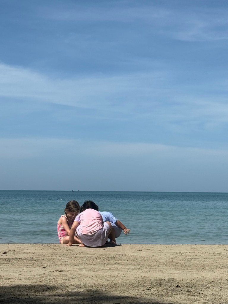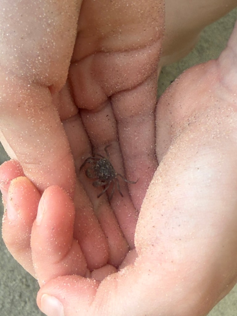 Anyway, they adventured out to a nearby island and came back with special coral and shells for me. Millie ran around catching tiny crabs on the beach, and then making friends with anyone who wanted to hold one.