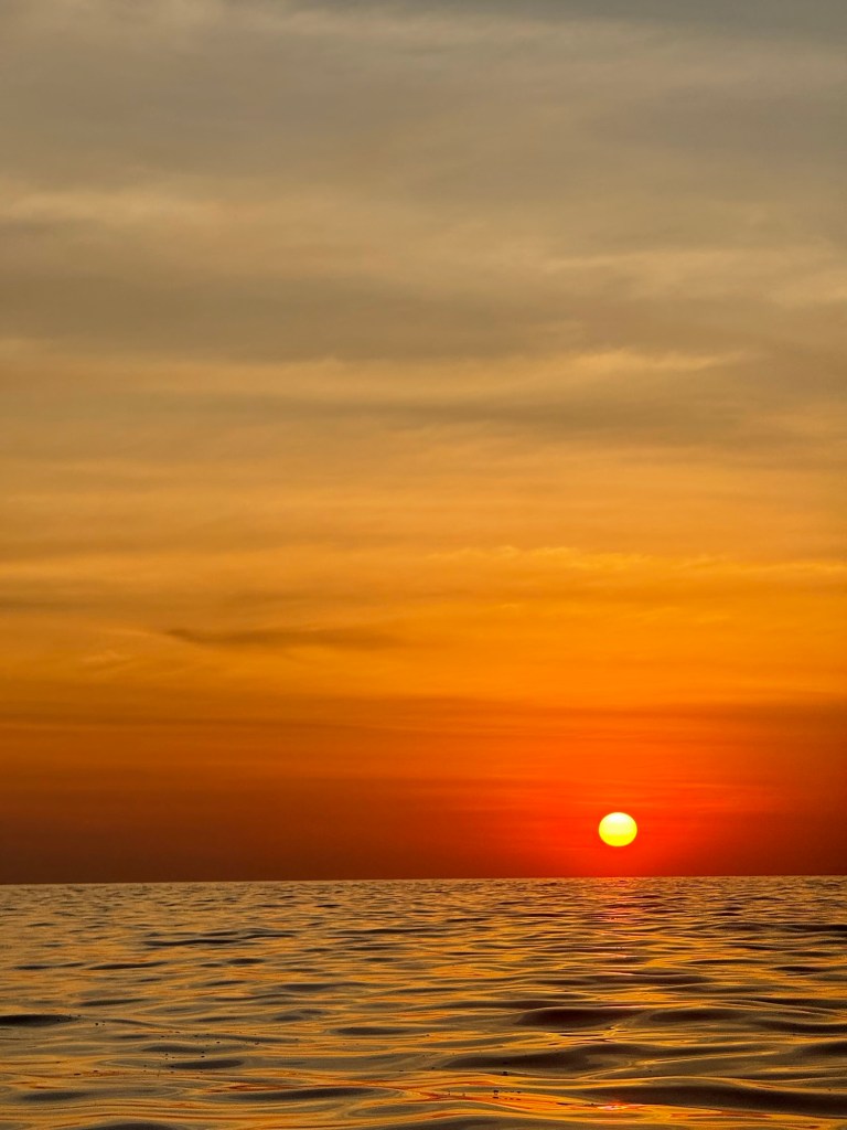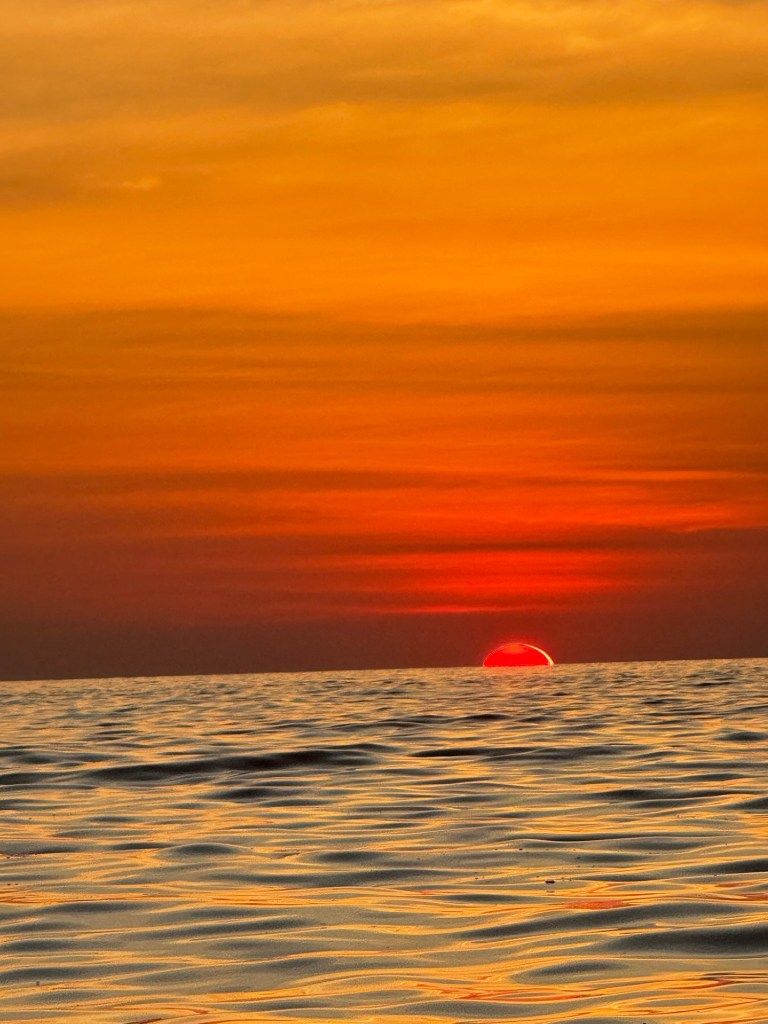 Eventually the sun turned bright red and we watched it inch down past the horizon. Nick clapped and Millie said “finally!! We can go back now!”