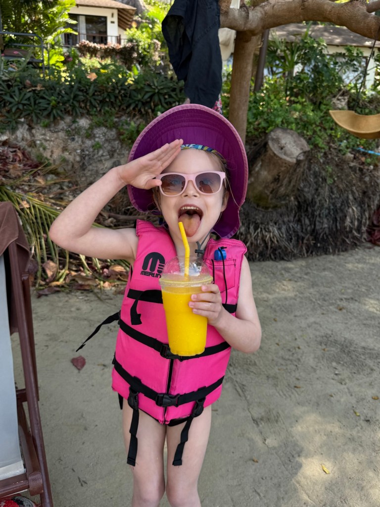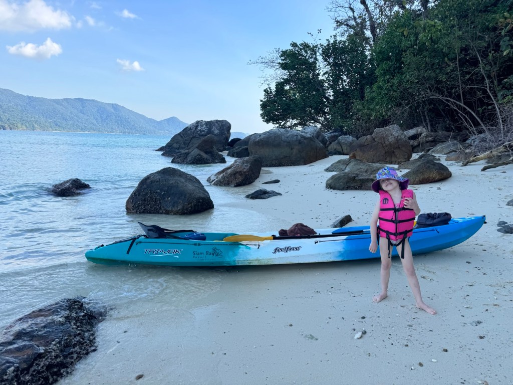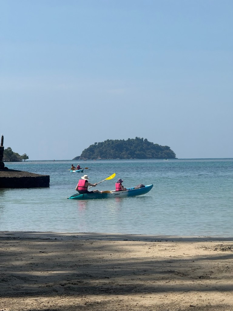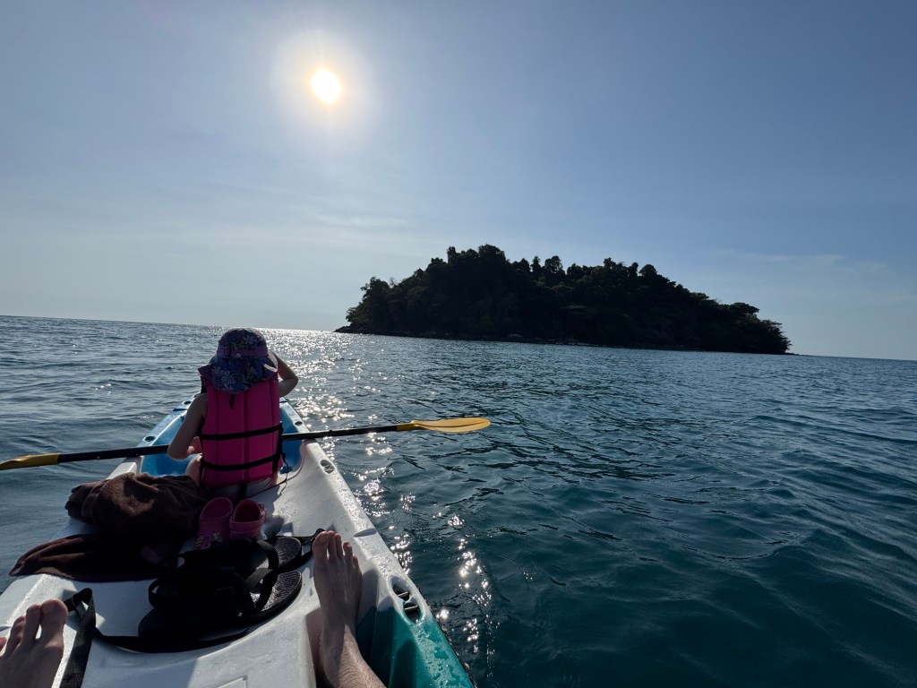 At about 1, Nick convinced her to go out on a kayak with him to find a further away island that he heard was good for snorkeling. It took some convincing and a bribe of a mango smoothie, but she agreed to go. I put on a fresh layer of SPF on her and helped them set off.