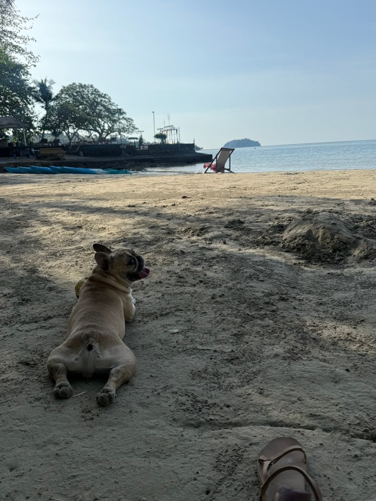 I sat on the beach in the shade for 3 hours all together. I finished my book and watched the tiny crabs. I made friends with a pug (?) that breathed way too loud.