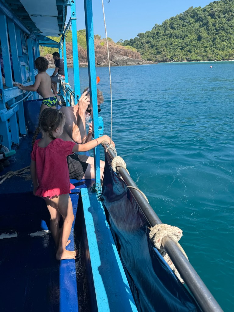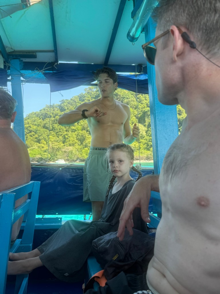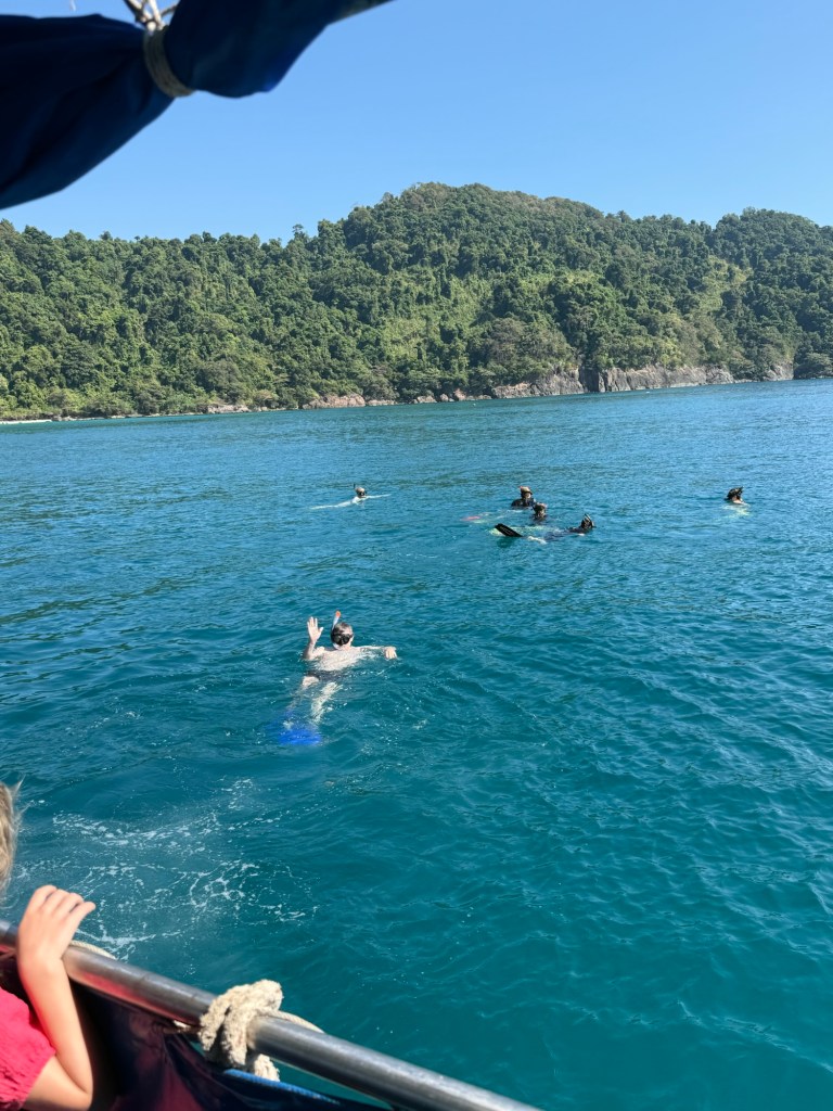 The third stop was another small island. The water was calm but she had had enough and wanted to stay on the boat. I was happy to stay with her and we waved goodbye to Nick as he set off on his last snorkel of the day.