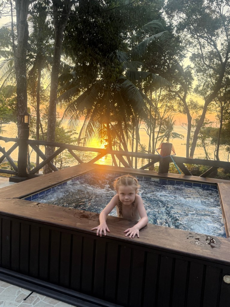 We arrived at sunset and sat watching it go down. Millie stripped down and skinny dipped in the tiny pool on our balcony.