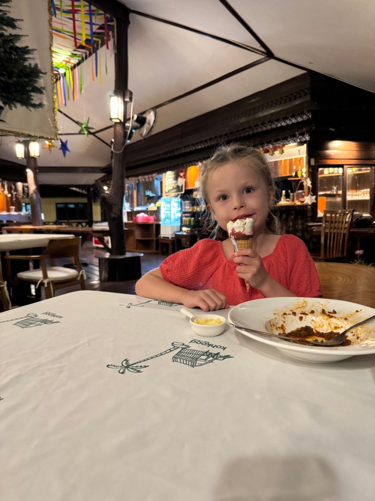 We had dinner at the hotel restaurant. It was either delicious or we were hungry from our day on the water. Millie ate her whole bowl of spaghetti bolognese (a new favorite) and then got her ice cream for Ice Cream Friday.