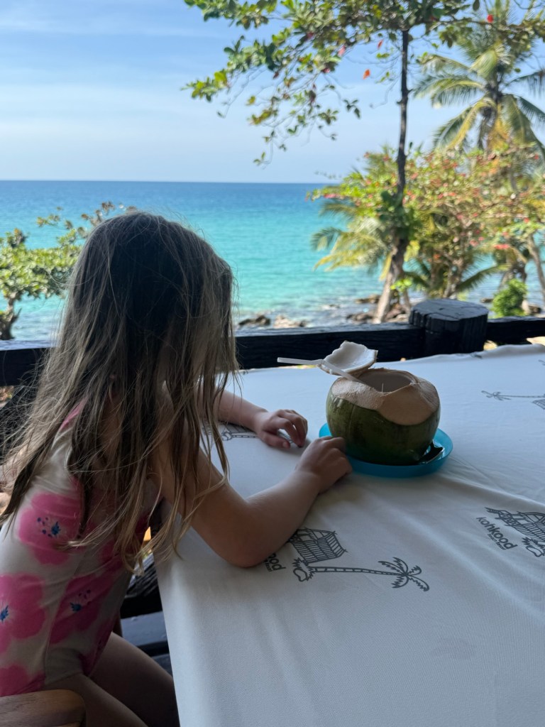 We walked up to the restaurant and had a delicious lunch. I have been loving yellow curry here. Add to my list of “perfect a recipe at home” foods. Nick and Millie shared a coconut which seemed almost too on-the-nose with the environment.