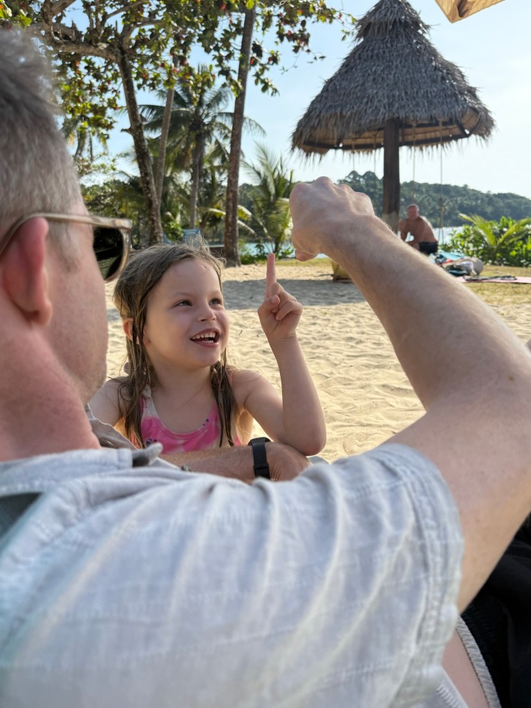They came back and we switched off. I played with Millie while Nick went out for a long snorkel from the beach. He came back shivering and hungry for lunch.