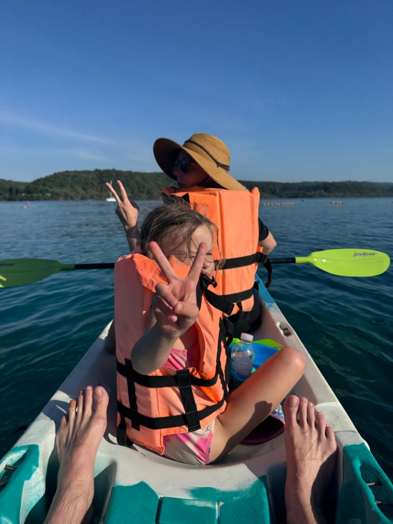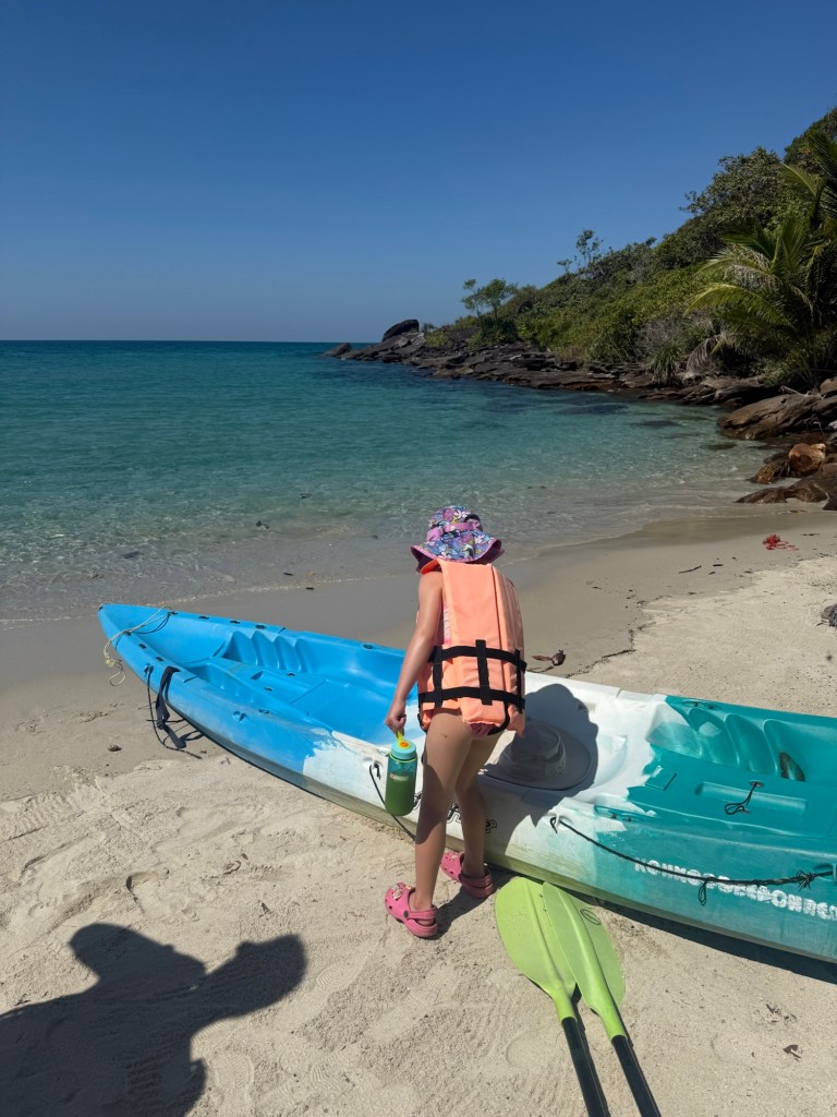 Nick suggested we use the hotel kayaks and try to get there on our own. He zoomed in on his phone map and tried to convince me it would be easy enough. Eventually I relented. We got everything packed up and set off from our hotel’s beach.