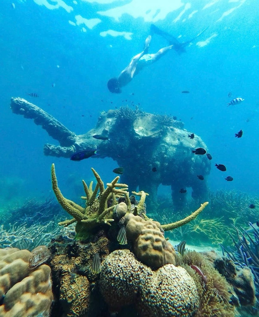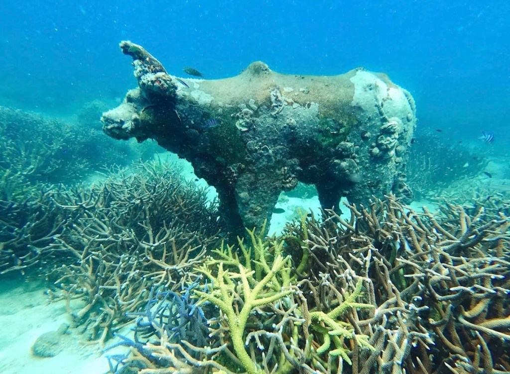 As we were paying, we asked about the statues and he directed us back to near where we had just been. By now there were more snorkelers so we asked them and they showed us the exact spot in the ocean where they were.