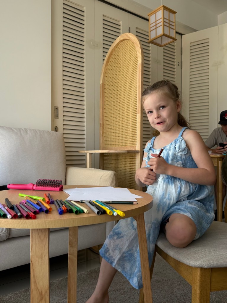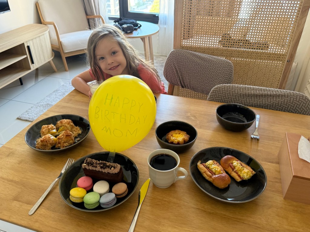 Millie had big plans for this morning. She wanted Nick to set an alarm so they could wake up before me and go and get me pastries. She came in and woke us both up by saying “dad, why didn’t you wake me up??” A for effort. They headed out for pastries and then set up this cute table scape while I pretended to sleep in.