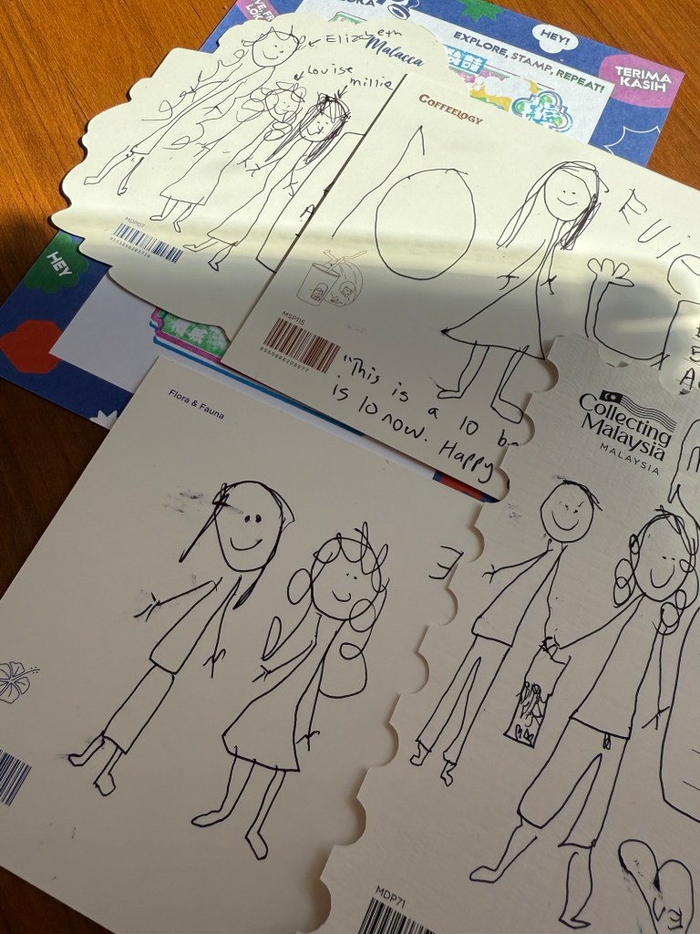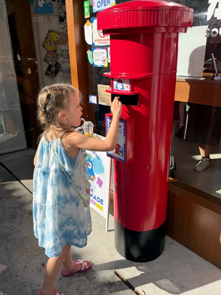 We browsed a stationery store and she “wrote” a bunch of postcards to send home to friends.