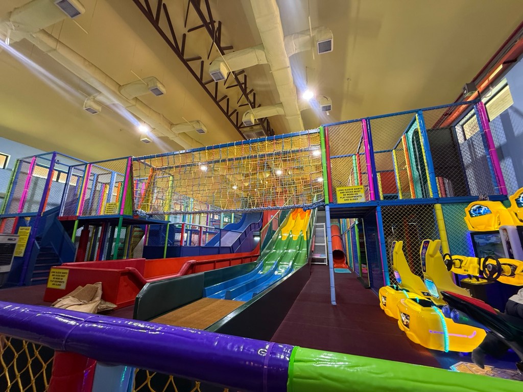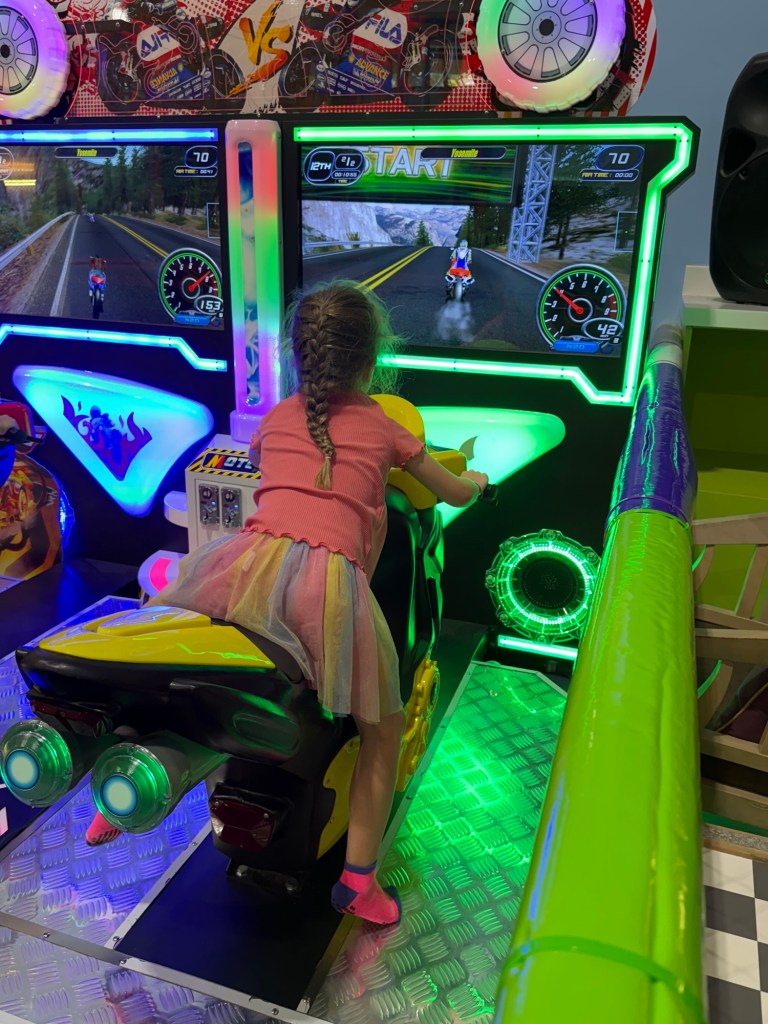 Nick came and met us. When she was done swimming we went back to the soft play thing so she could do more sliding and motorcycle racing.