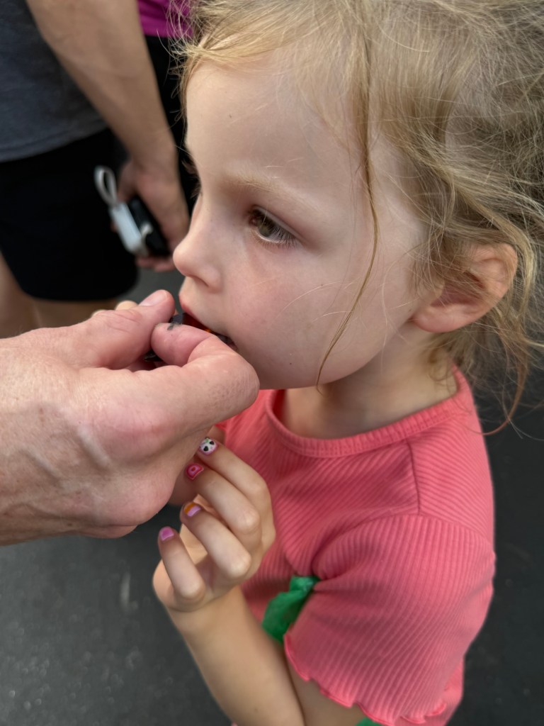 We sat in some shade with a beer while she woke up. Millie was hungry, but mostly she wanted to be independent and order food by herself. She walked down the street alone to look at all the carts to decide what to buy. I kept an eye on her but she went far enough that a well-meaning stranger stopped her to ask where her parents were.