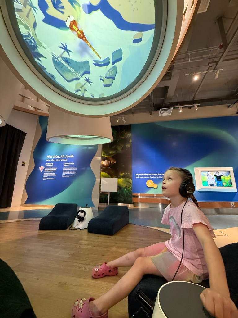 We started in the children’s area, where everything could be touched. This exhibit was about keeping rivers clean. Not the most interesting but it got Millie into museum mode.