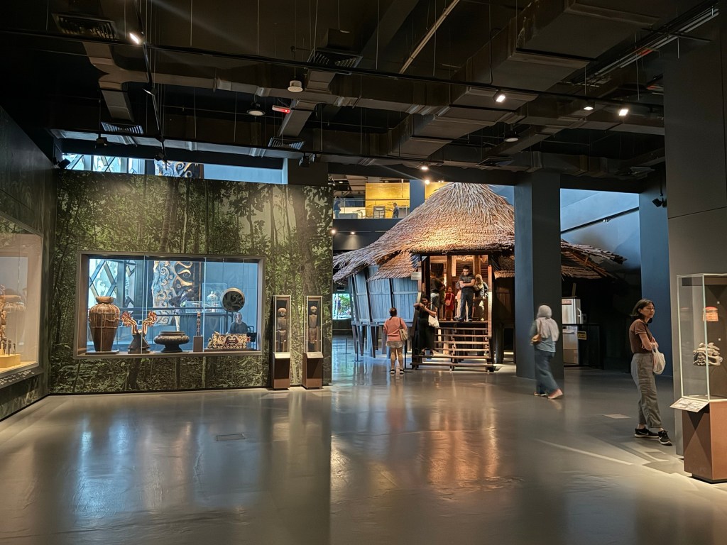 Like yesterday, we had a hard time pulling her away. Lots of waiting out in the hallway and loud complaints, especially when she heard we were going to a museum. “Not a museum!!” We walked about 15 minutes and arrived at the Borneo Cultures Museum.