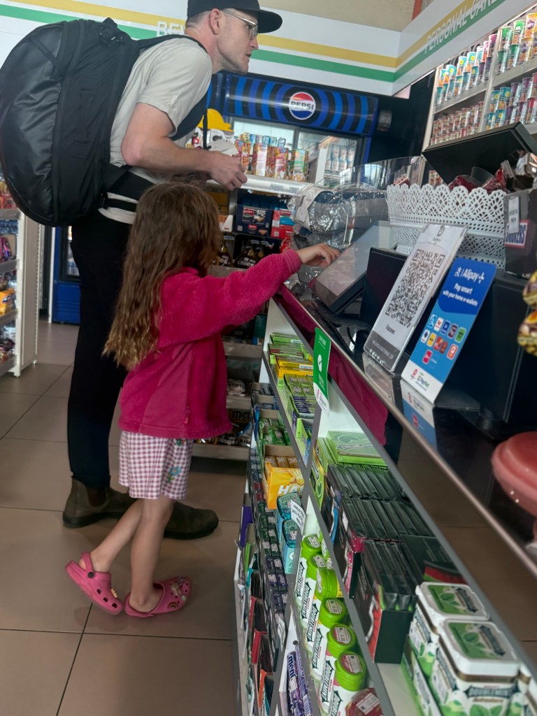 Millie tried to make friends with some other kids there but they weren’t very interested, so instead she just struck up a conversation with their dad. We eavesdropped. “Where are you from?” “New Zealand” “I’m from Texas. You know, where cowboys are from.”