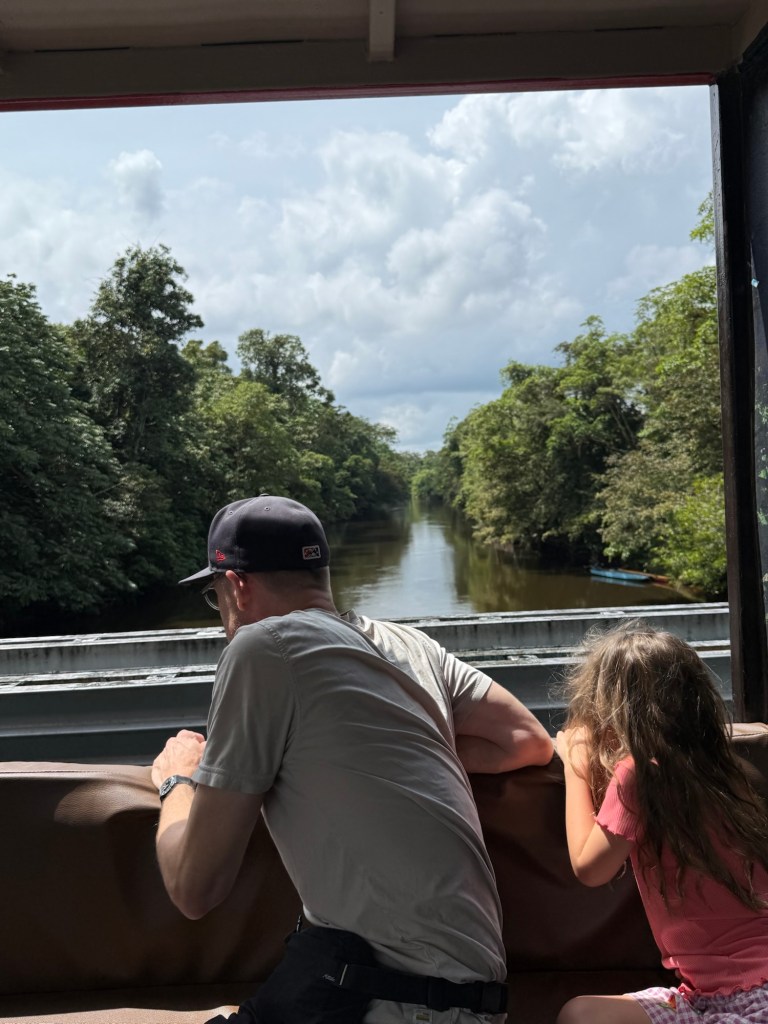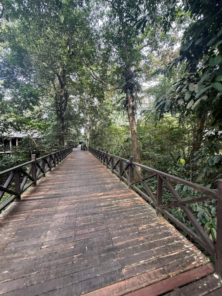 We checked in and unexpectedly got upgraded to a suite. It feels very luxurious considering we’re in the middle of the jungle, hovering above swamp land.