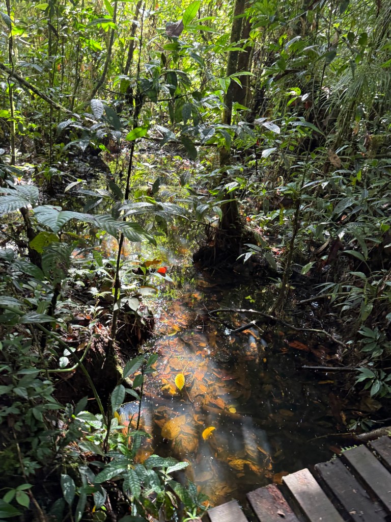 Another interesting thing. It’s a perfect mosquito breeding ground here, wet and hot and dense with leaves. But there are so many bats that they get eaten and don’t bother people much.
