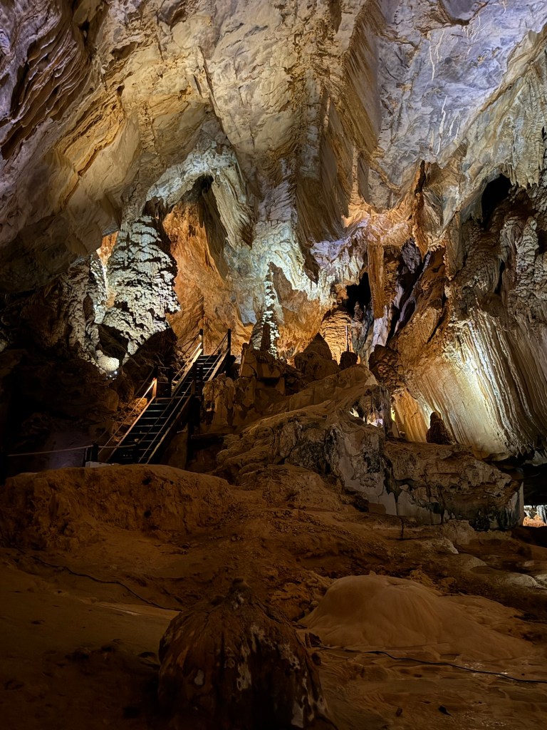 We arrived at the first cave, Lang Cave. This was a “traditional” cave full of stalactites / -mites / etc. Caves are so magical in person and so lackluster in photos, like sunsets and fireworks.